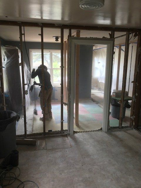 - Installed new structural glulam beams and structural posts between rooms as noted above, and drywall over.