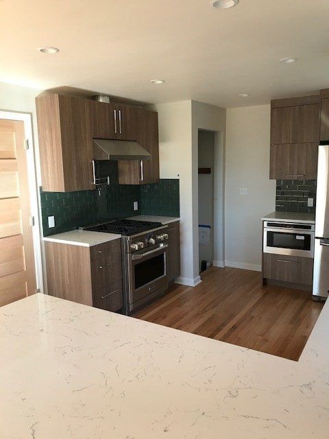 - Run new HVAC and venting for new stove hood, boxed into cabinet above stove.