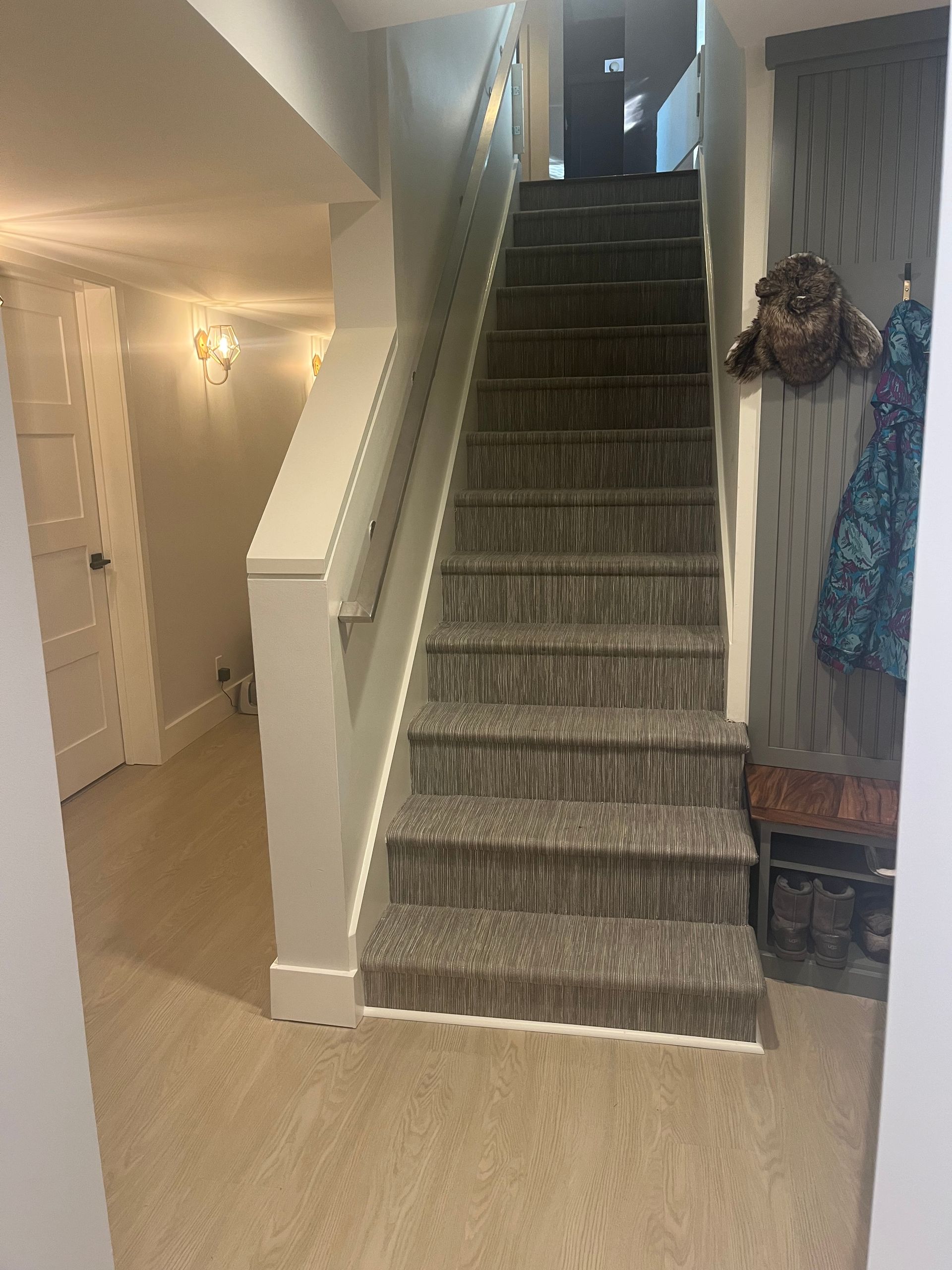 We remodeled the basement of a home with an updated bathroom, laundry/craft room, mud room and hallways. Highlights of the project included: