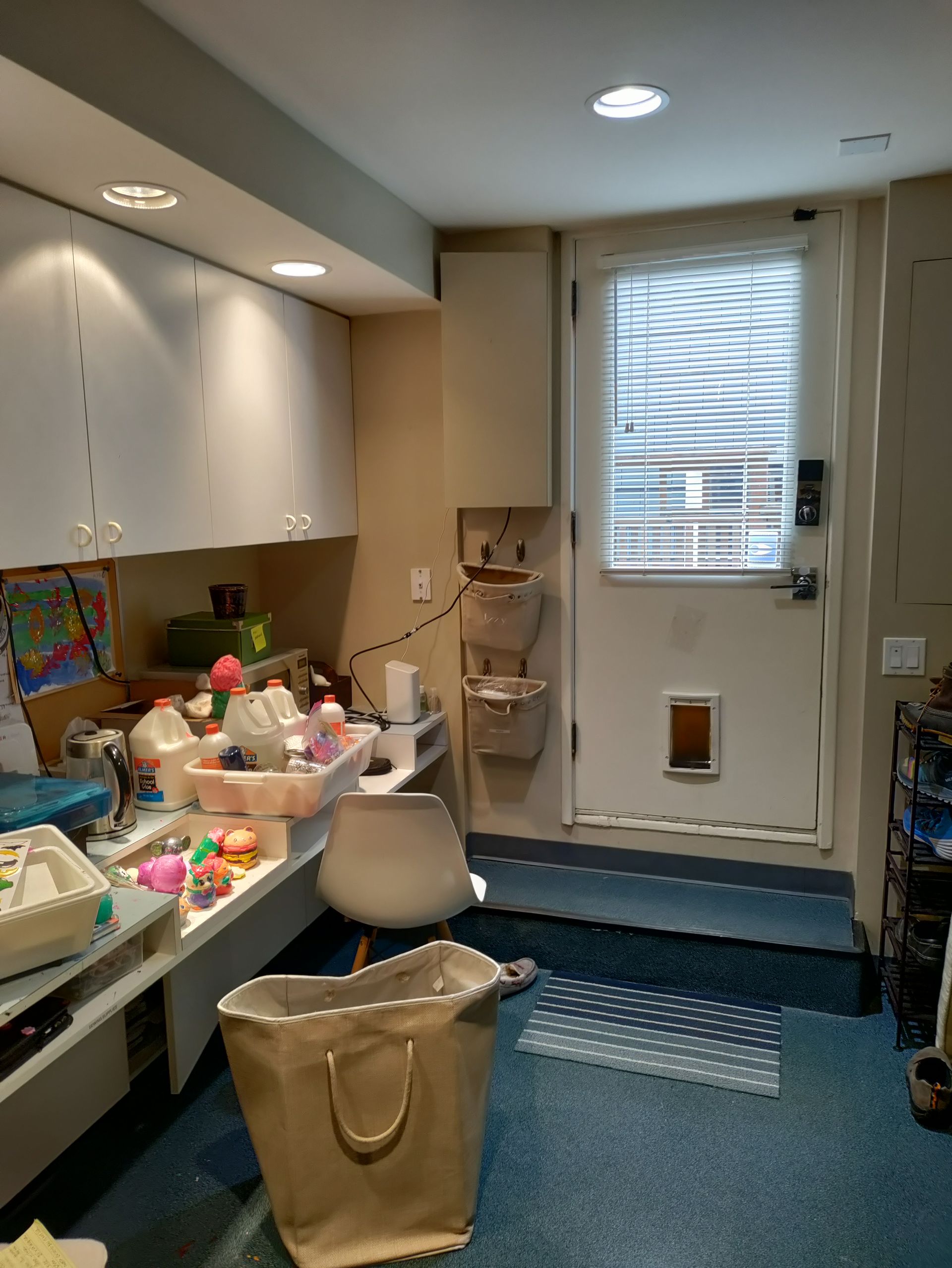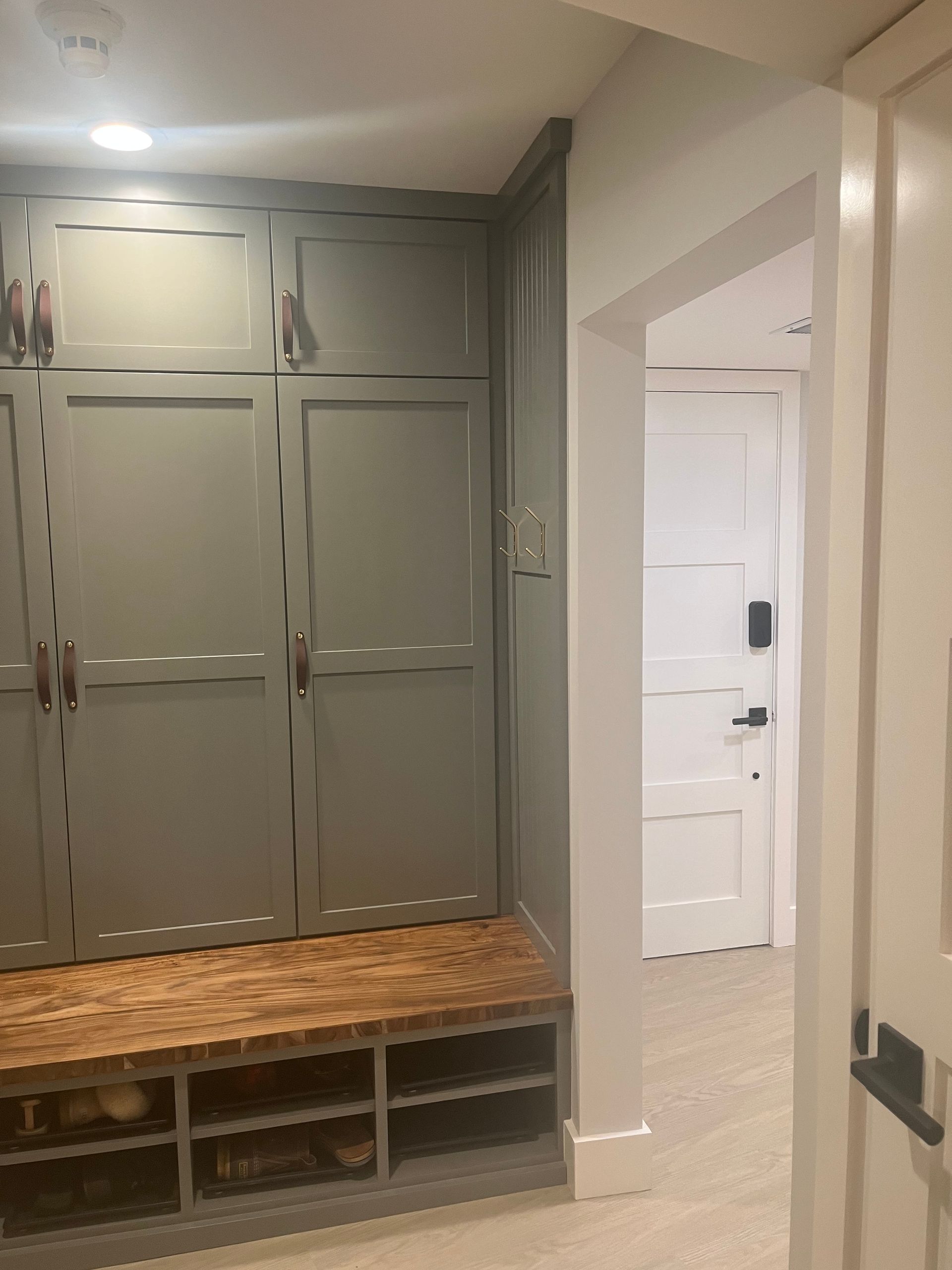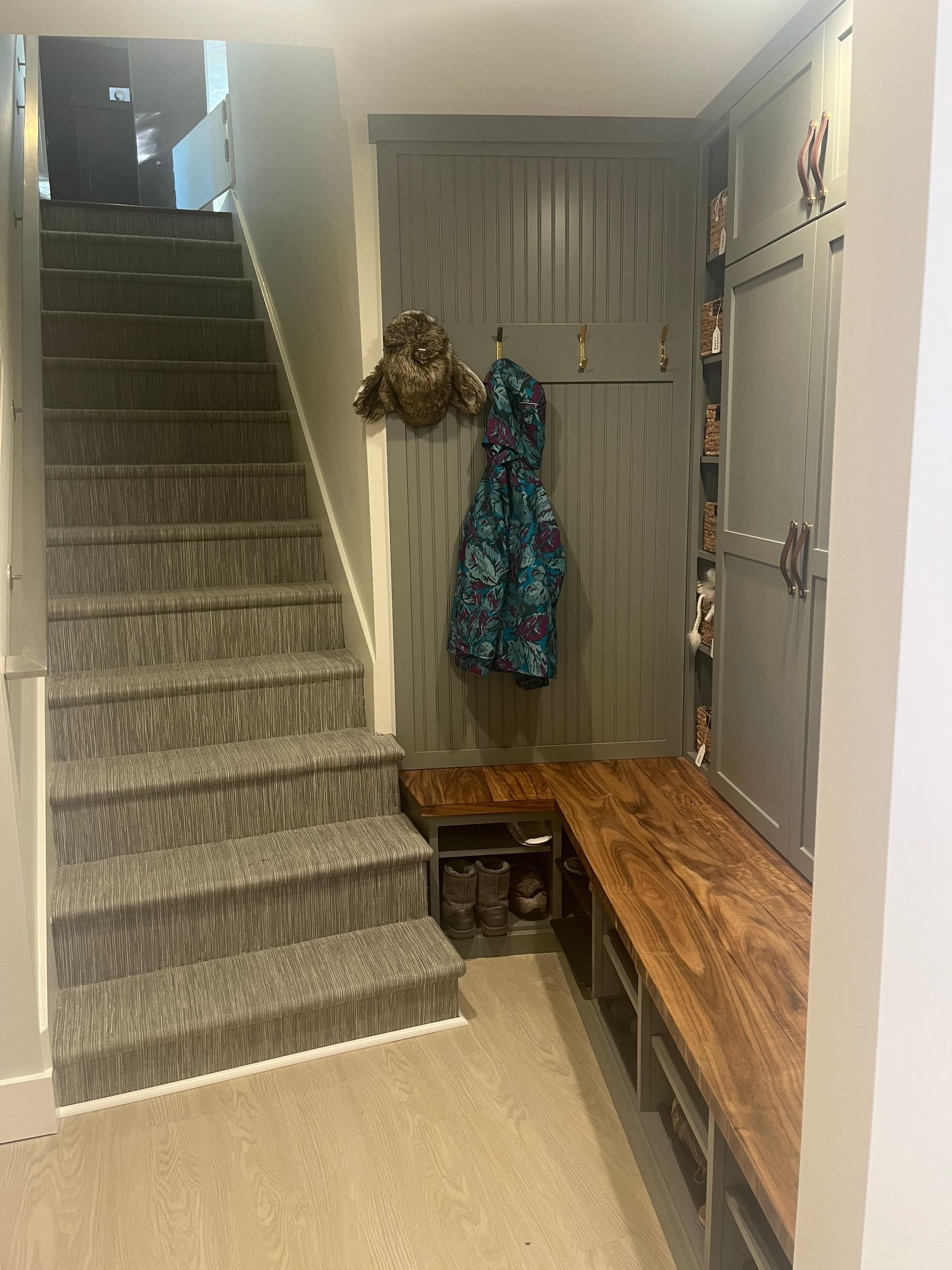 - We installed new custom-made cabinets for the bathroom, the mud room area at the bottom of stairs, and in the laundry / craft room.