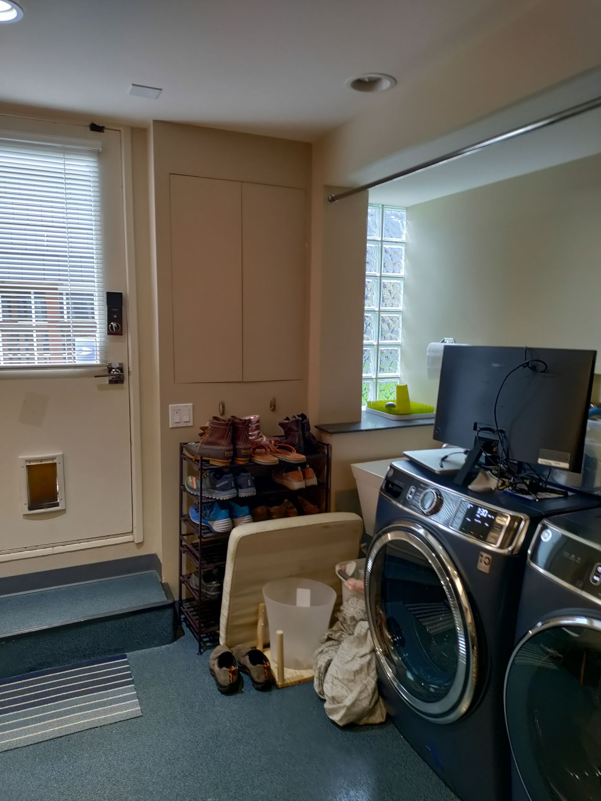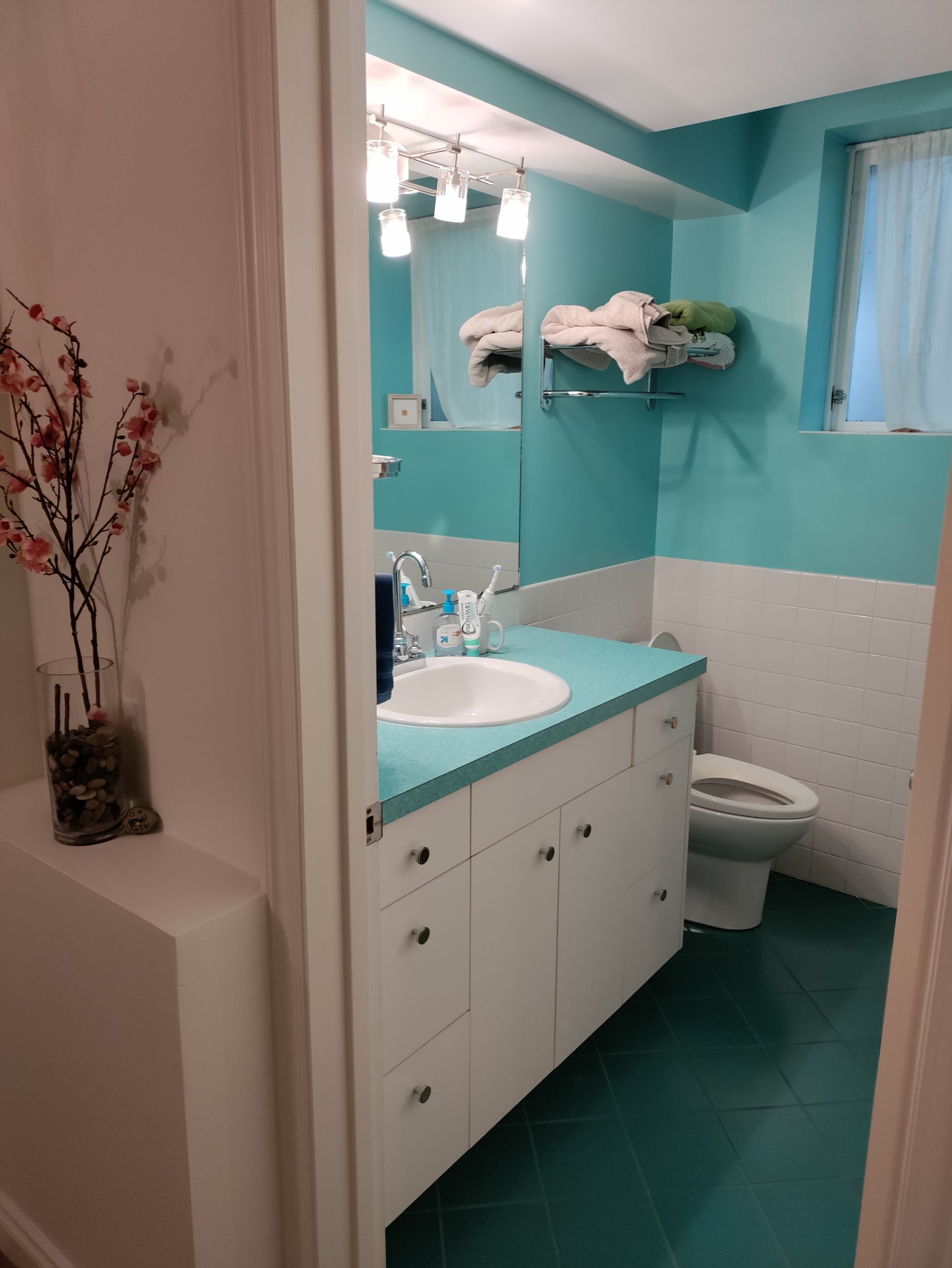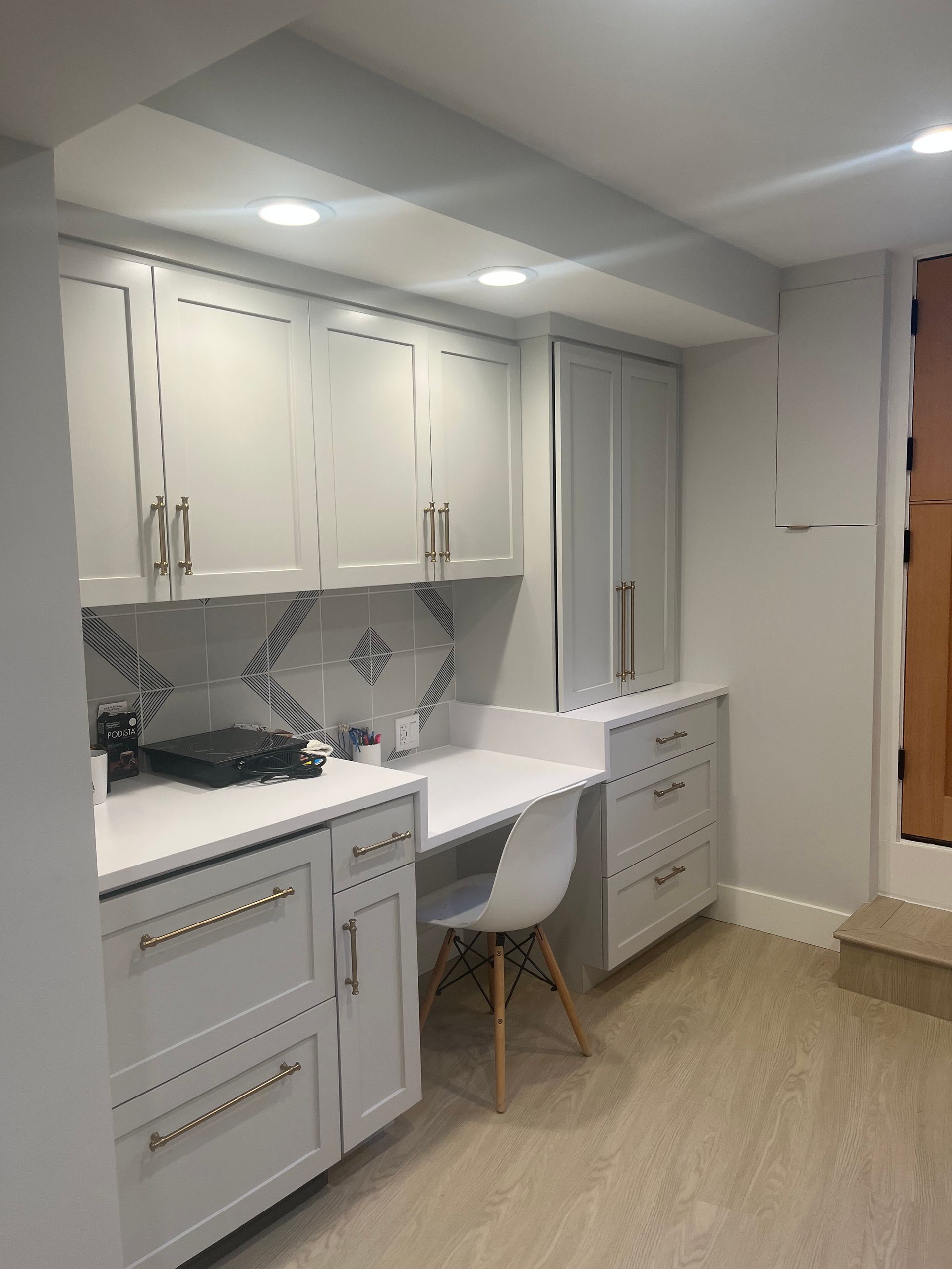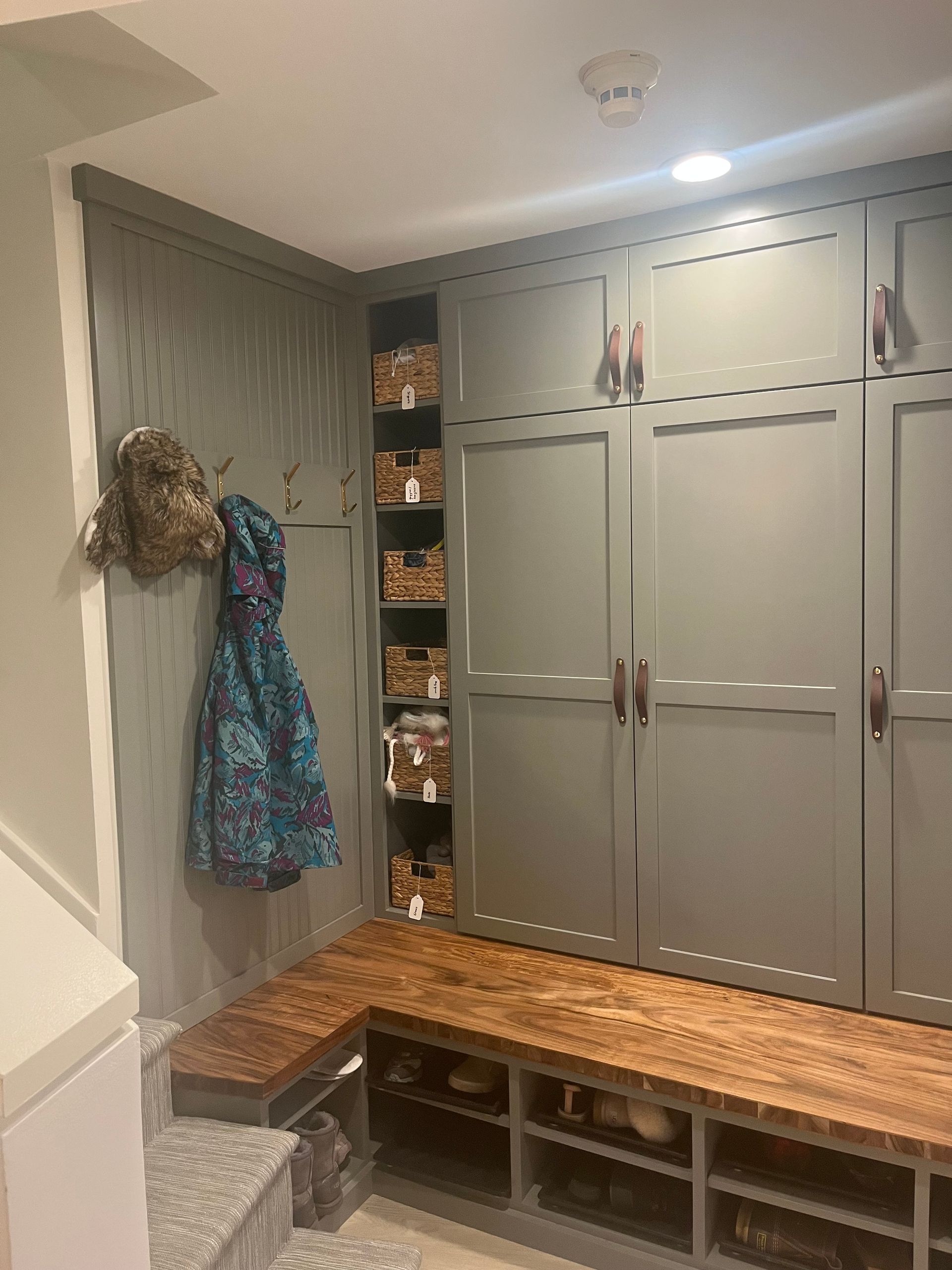 - We installed new custom-made cabinets for the bathroom, the mud room area at the bottom of stairs, and in the laundry / craft room.