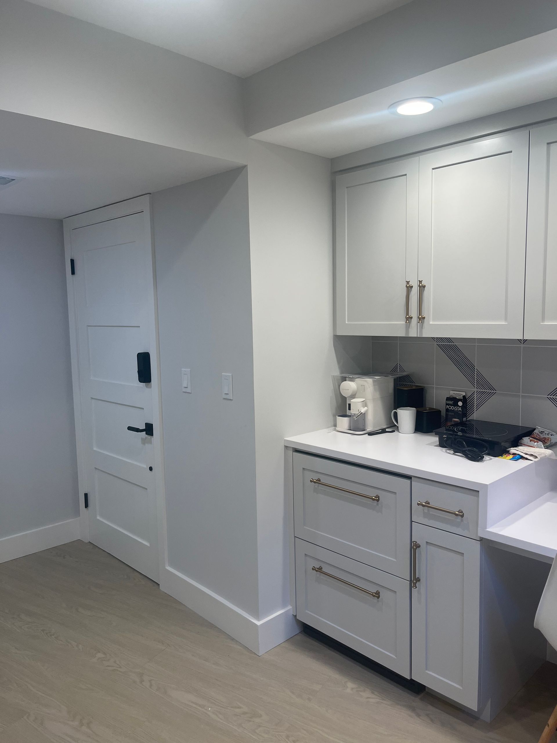 - Misc. remodel works in adjoining basement bedrooms, office, storage/work out rooms.