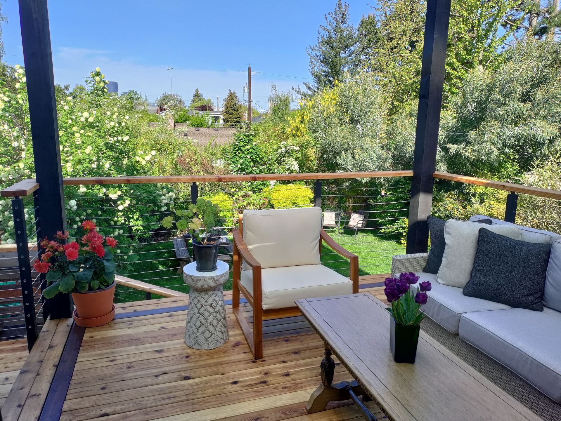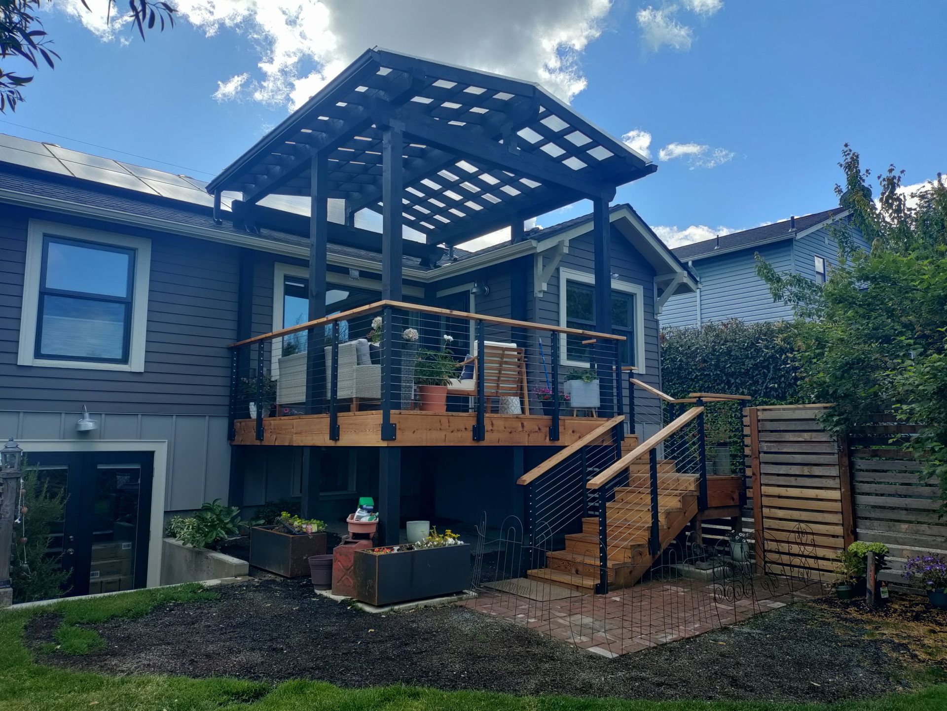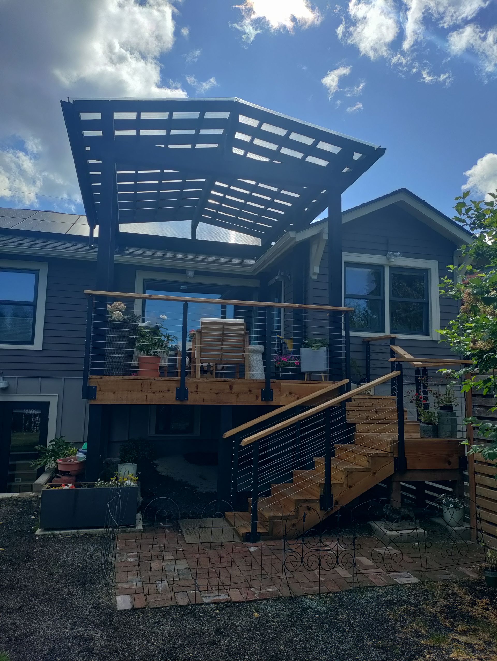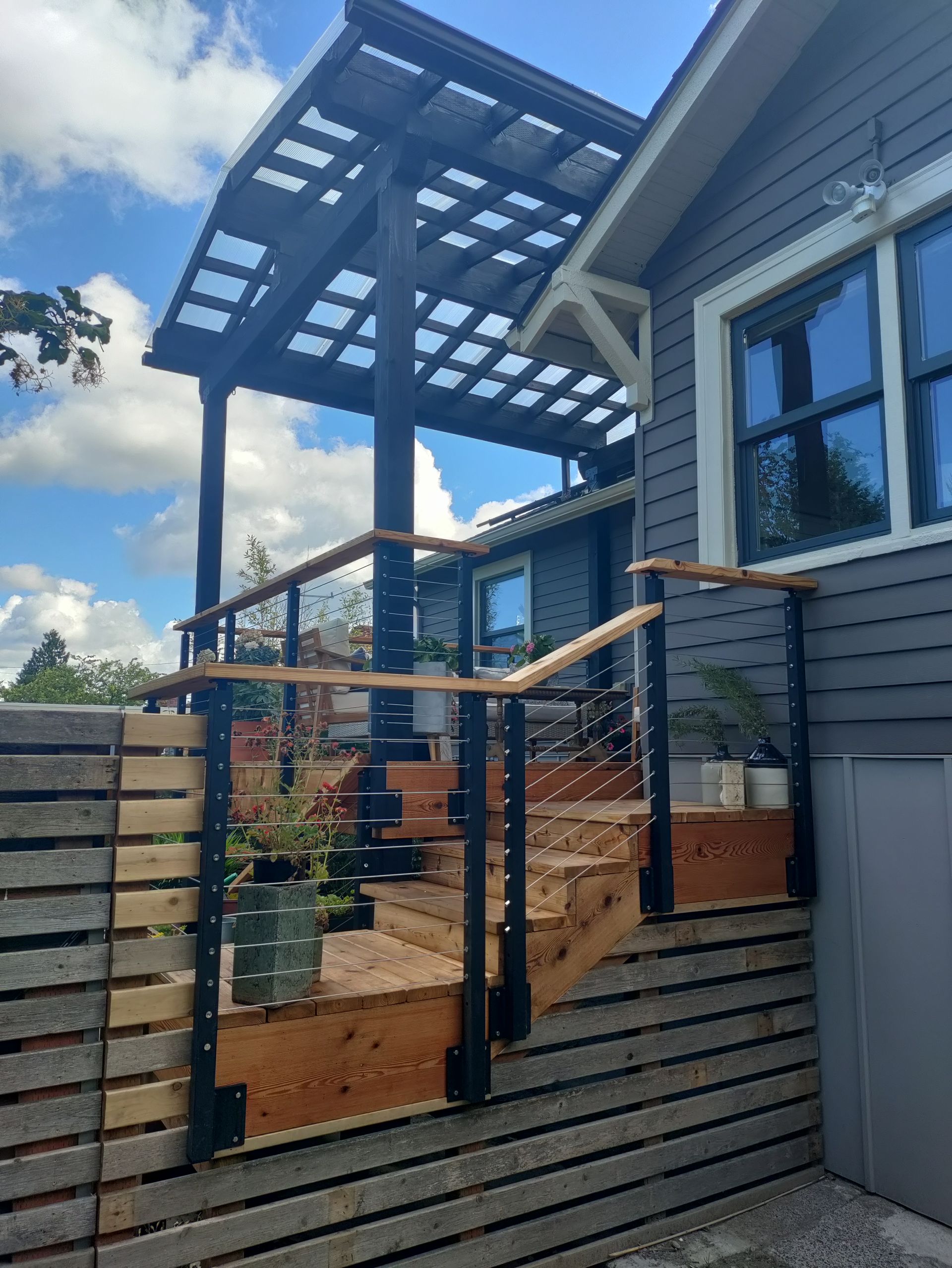 - We installed black metal railing with wiring around the perimeter of the deck and stairs.