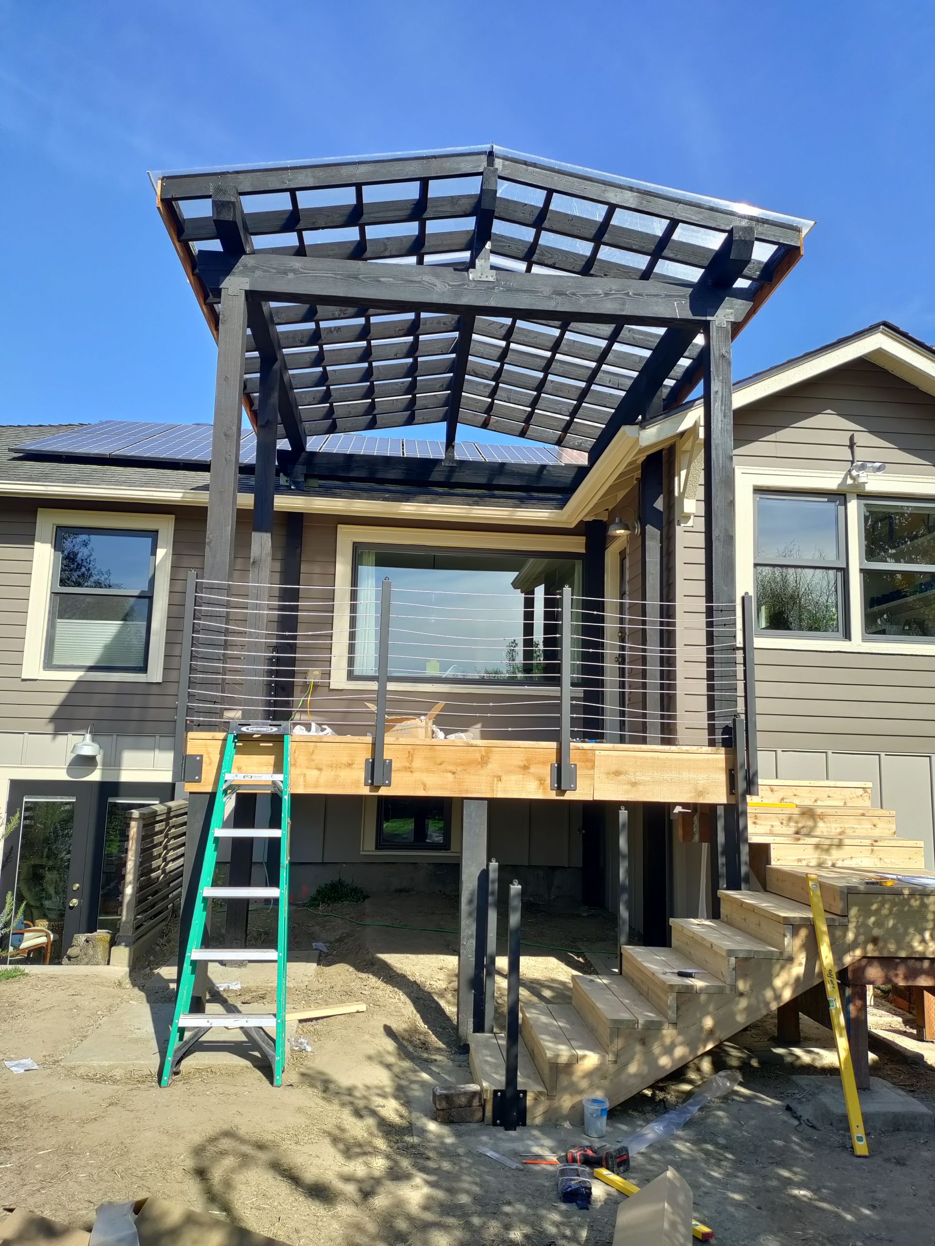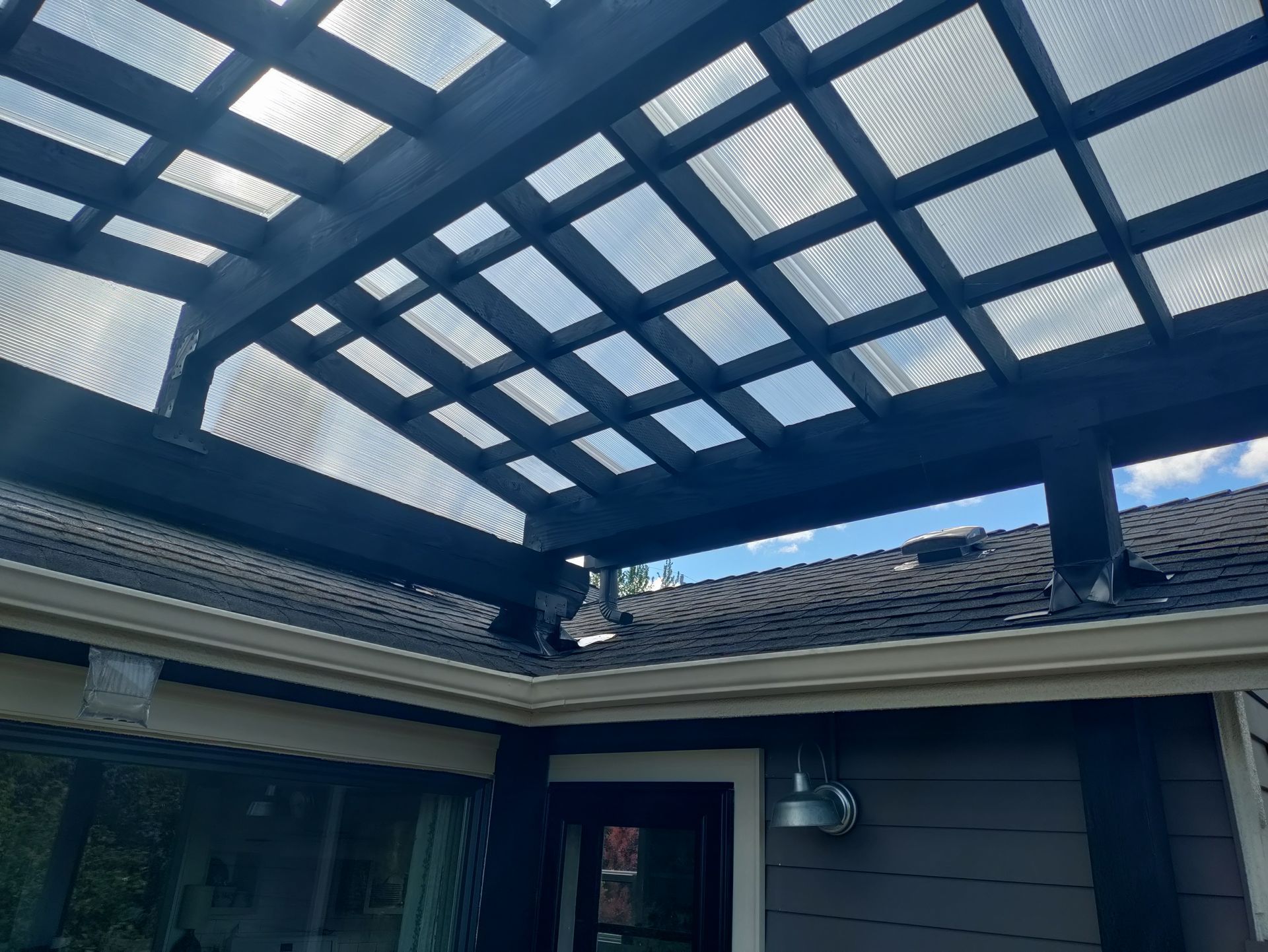 - We installed a new clear plastic sunroof over the roof joists of the deck.