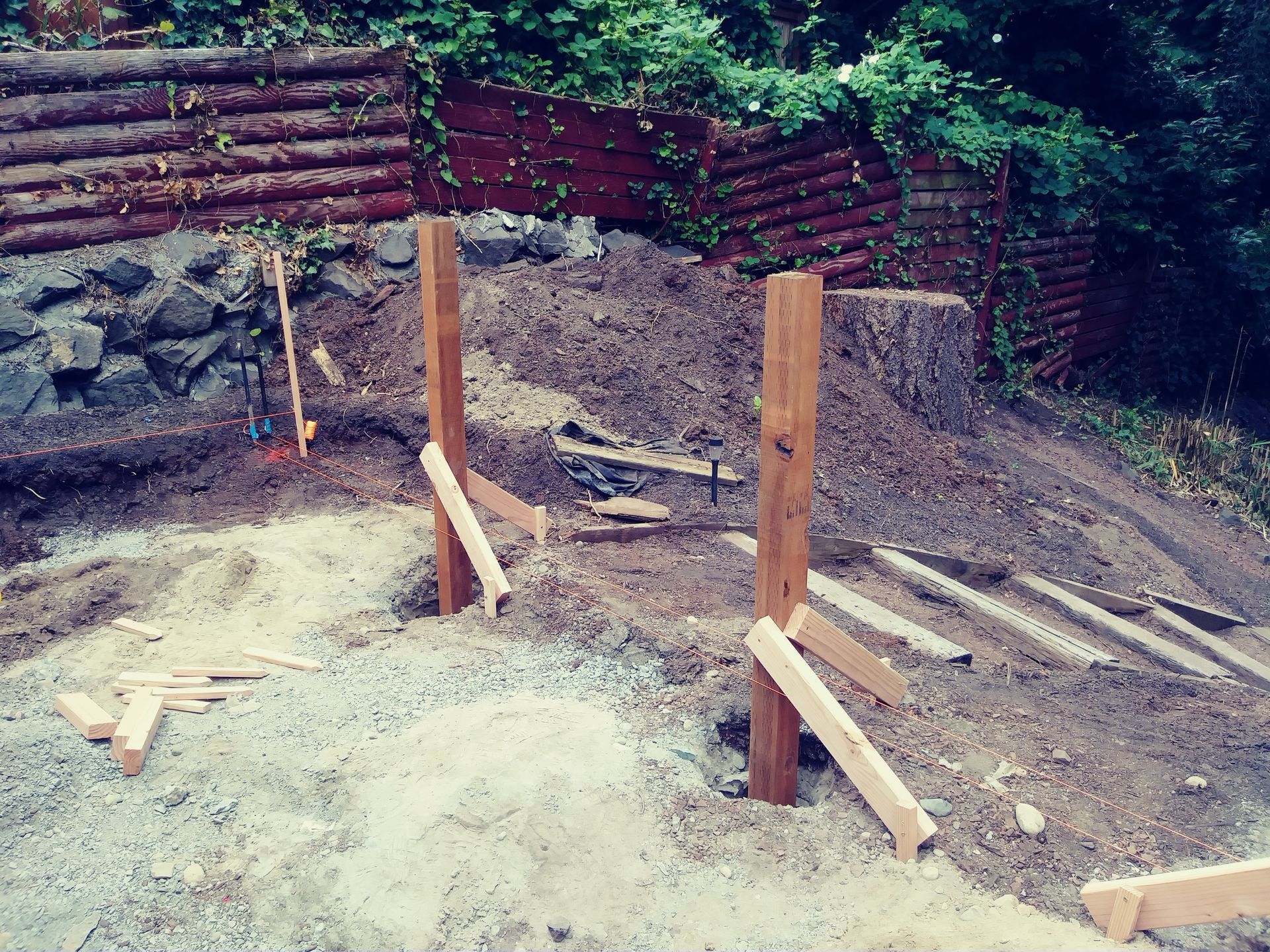 - Added gravel, compacted gravel, and added water membrane prior to installation of joists for deck structure.