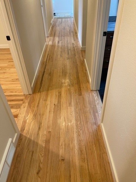 - We removed all carpets , sanded and refinished existing wood floors under the carpets, refinished existing hardwoods in dining and living room area, removed laminate and installed new hardwoods in the kitchen, to unify all areas throughout the house. matched as close as possible.