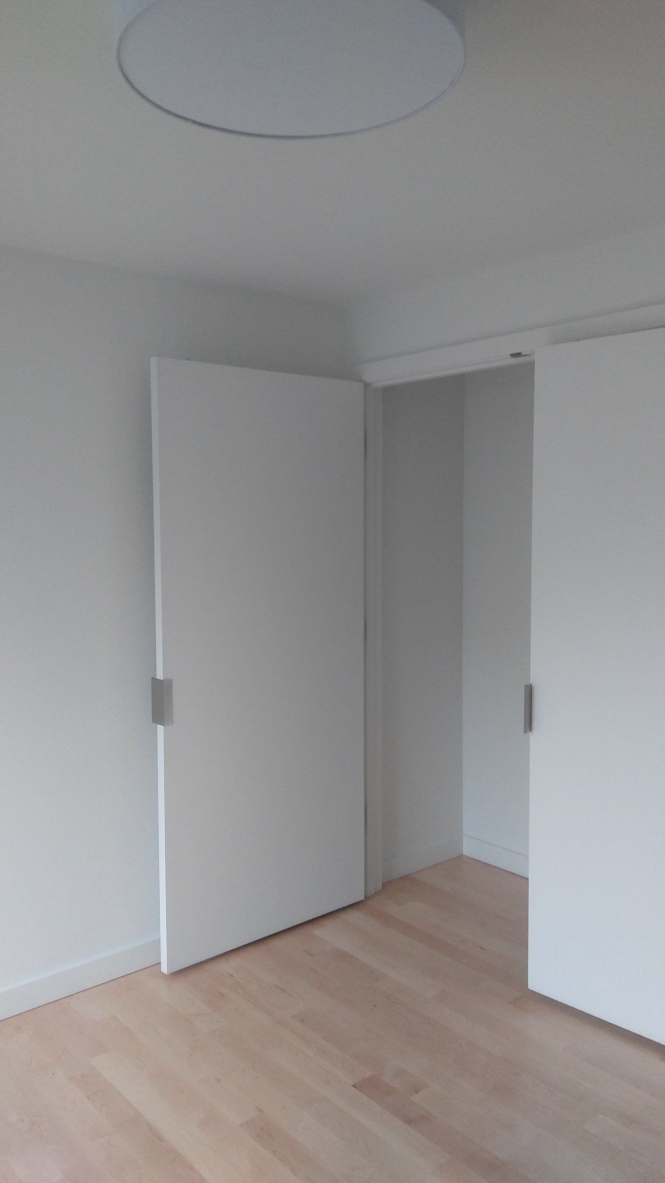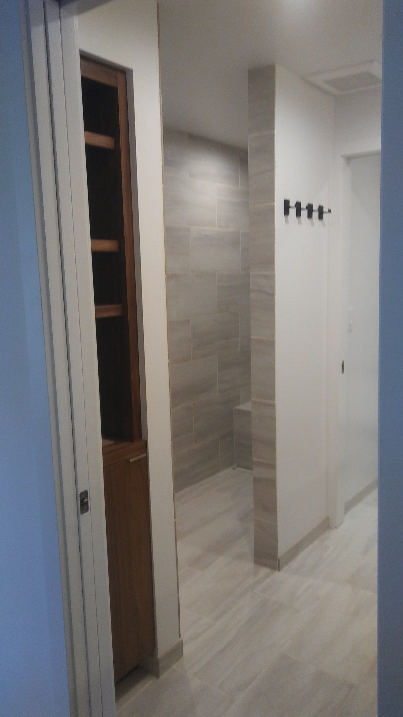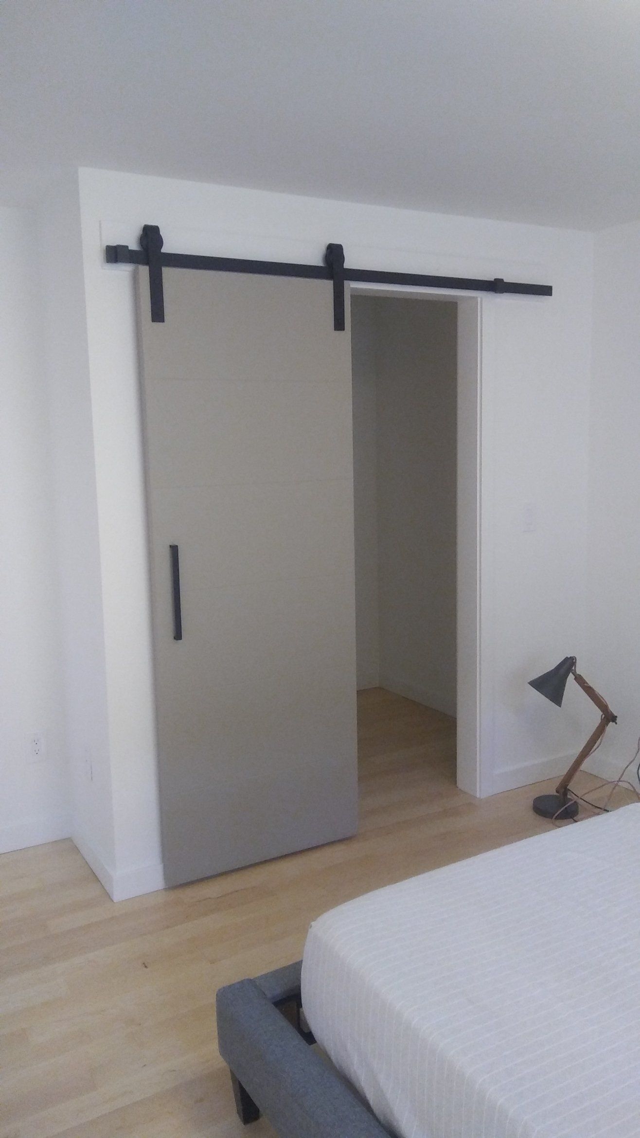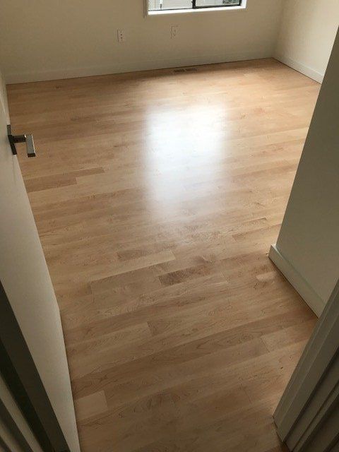 - We patched in new wood floors where existing walls removed, and old cabinets removed, and then refinished all floors on this entire level to be the same.