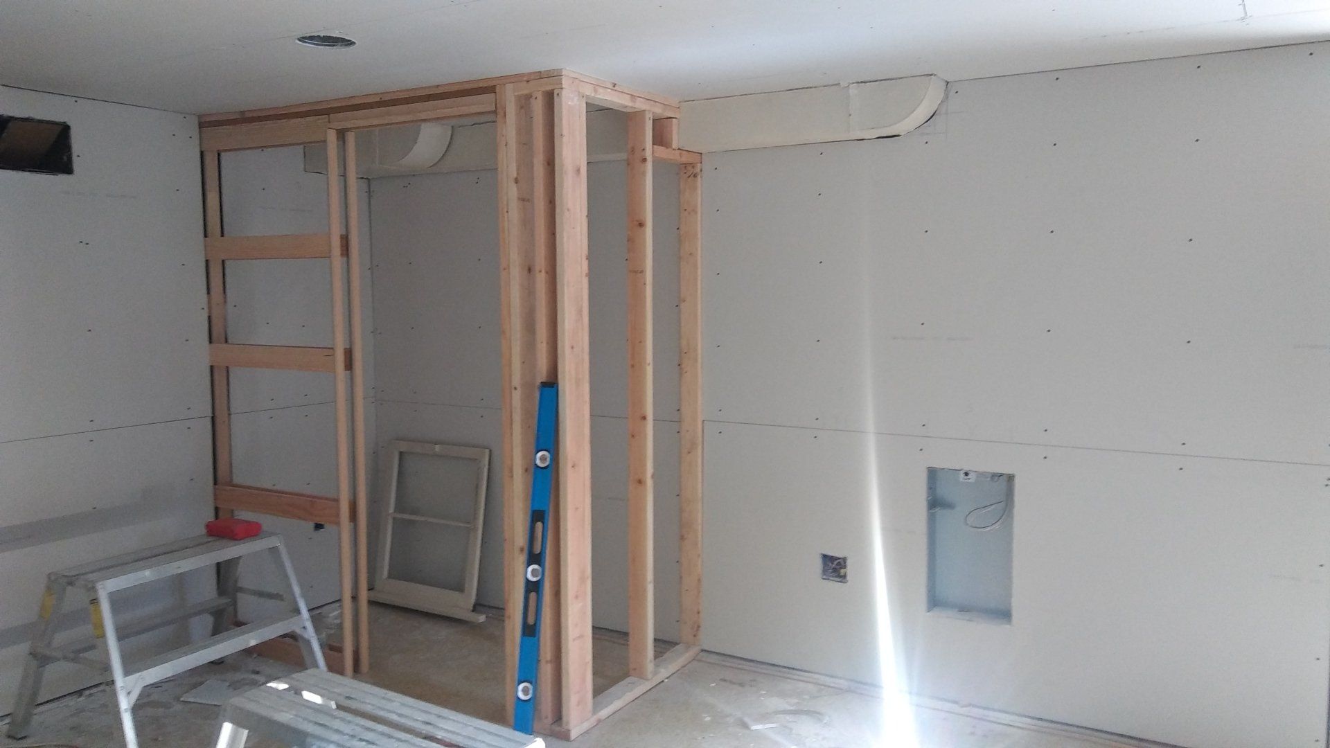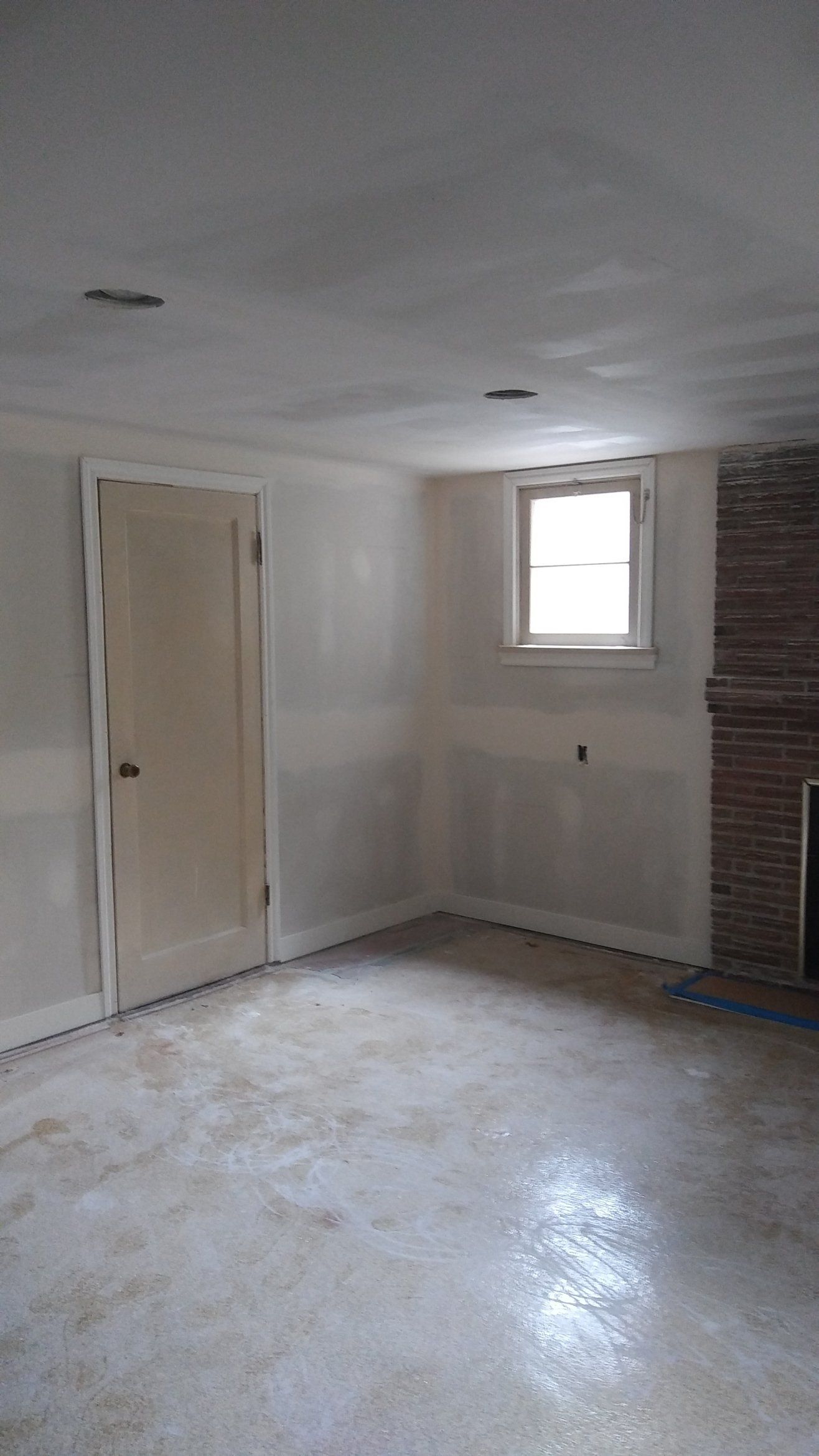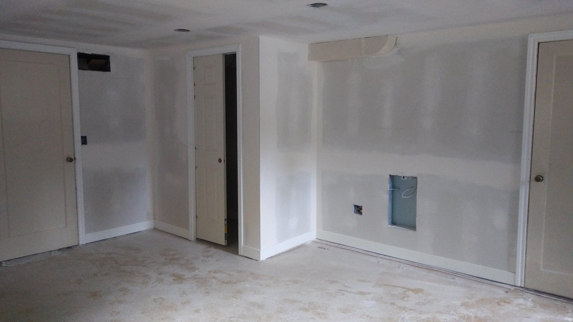 - Remove all existing drywall on walls and ceiling, and replace with new smooth finish drywall.