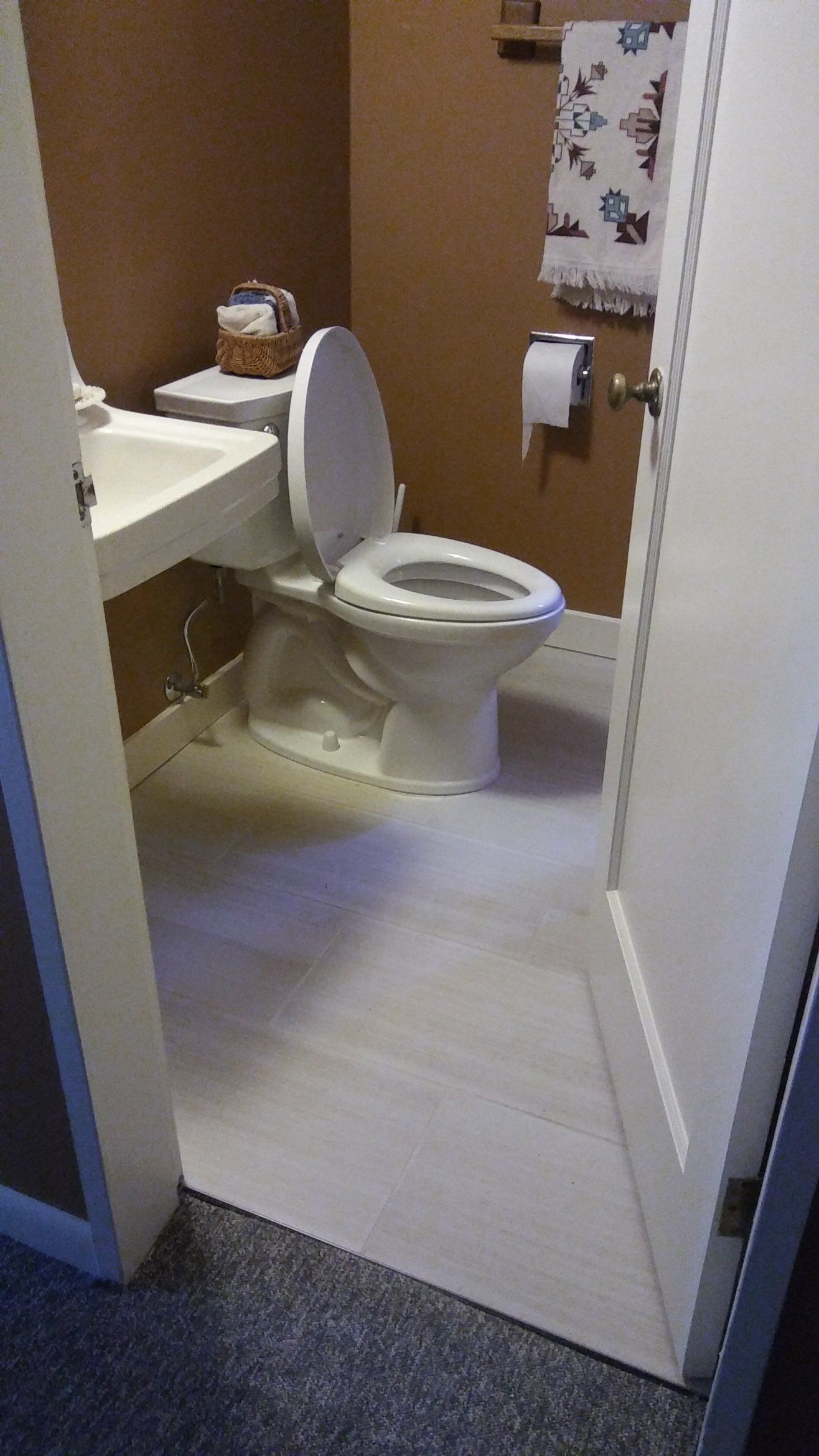 - New tiled floor on fireplace hearth, and new tiled floor on adjoining bathroom floor.