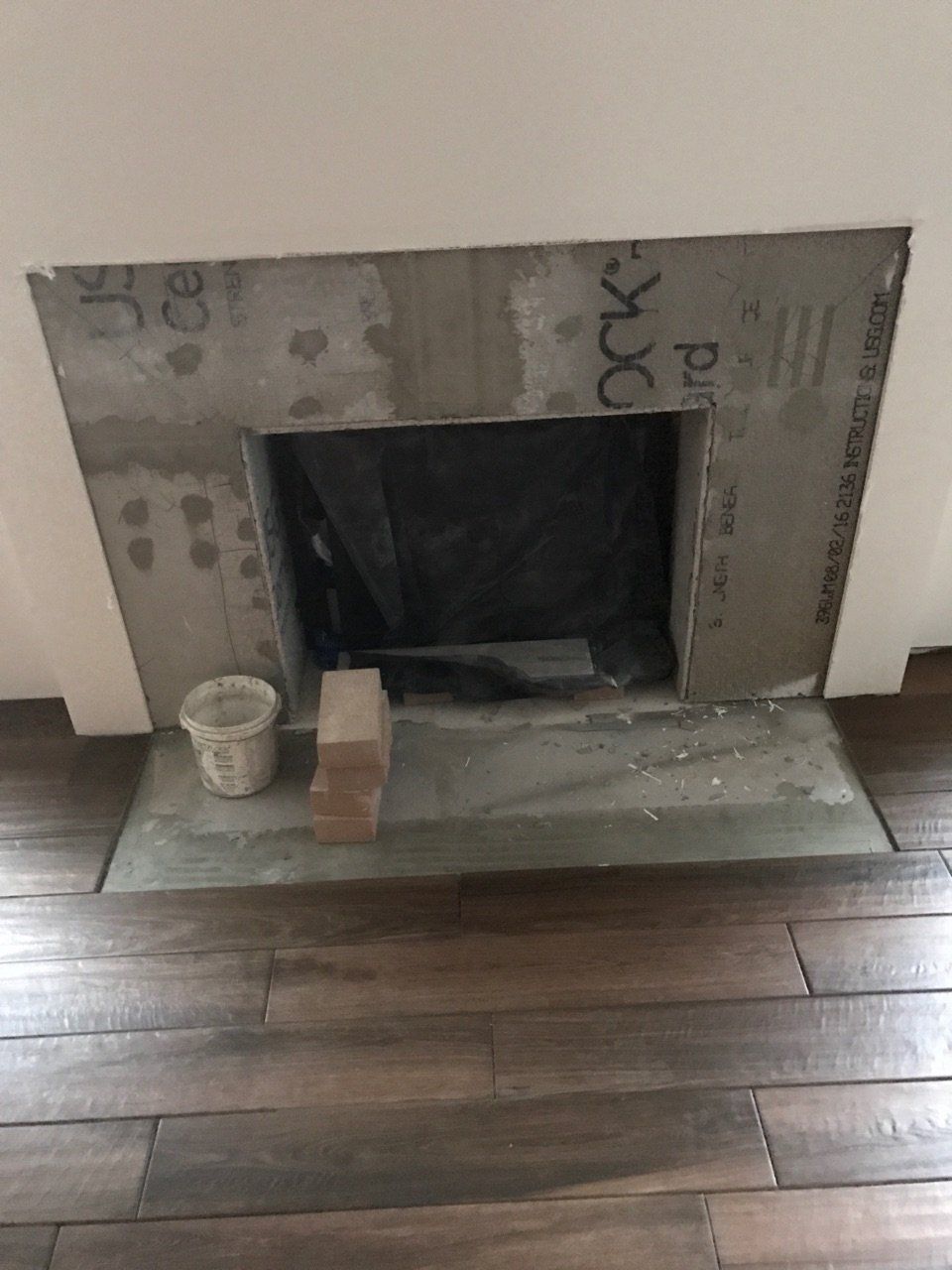 - Fabricated and installed new stone slab hearth and front for fireplace.