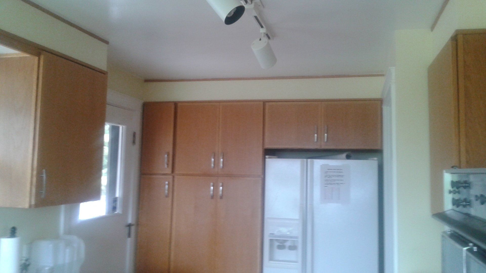 - Removed track lighting; and our Electrician rewired and installed a combination of ceiling can lights, along with wall mount sconces.