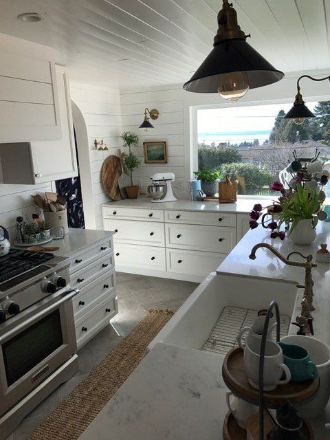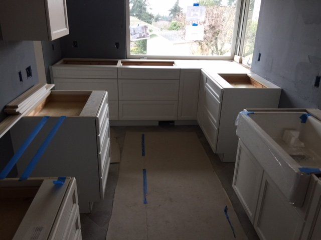 - Quartz stone slab counters to wrap around end window walls at same height (existing end window counter was at a lower height).