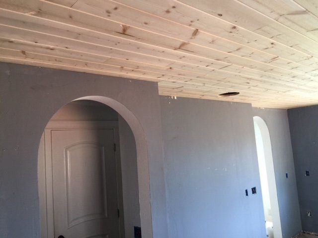 - Wood paneling installed on all exposed walls and ceilings, then custom painted.