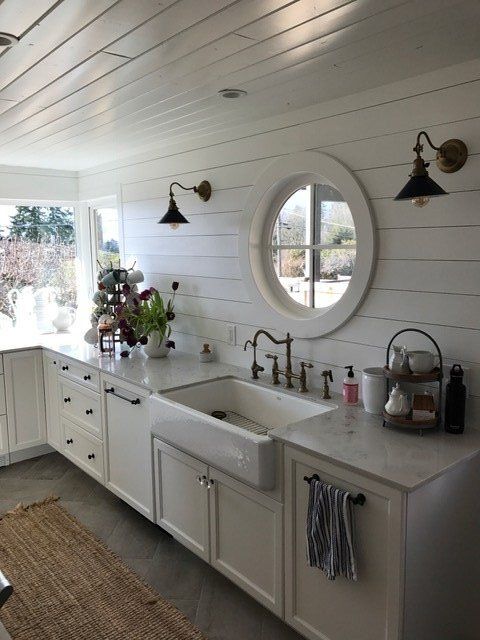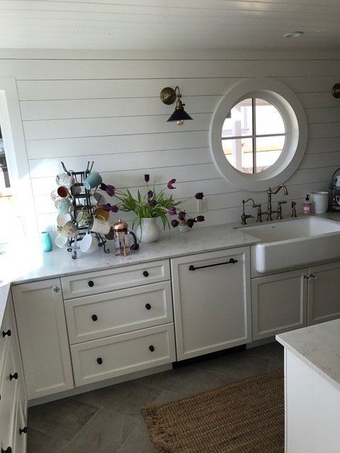 - New circular sink window, installed with custom made wood trim detail, and painted.