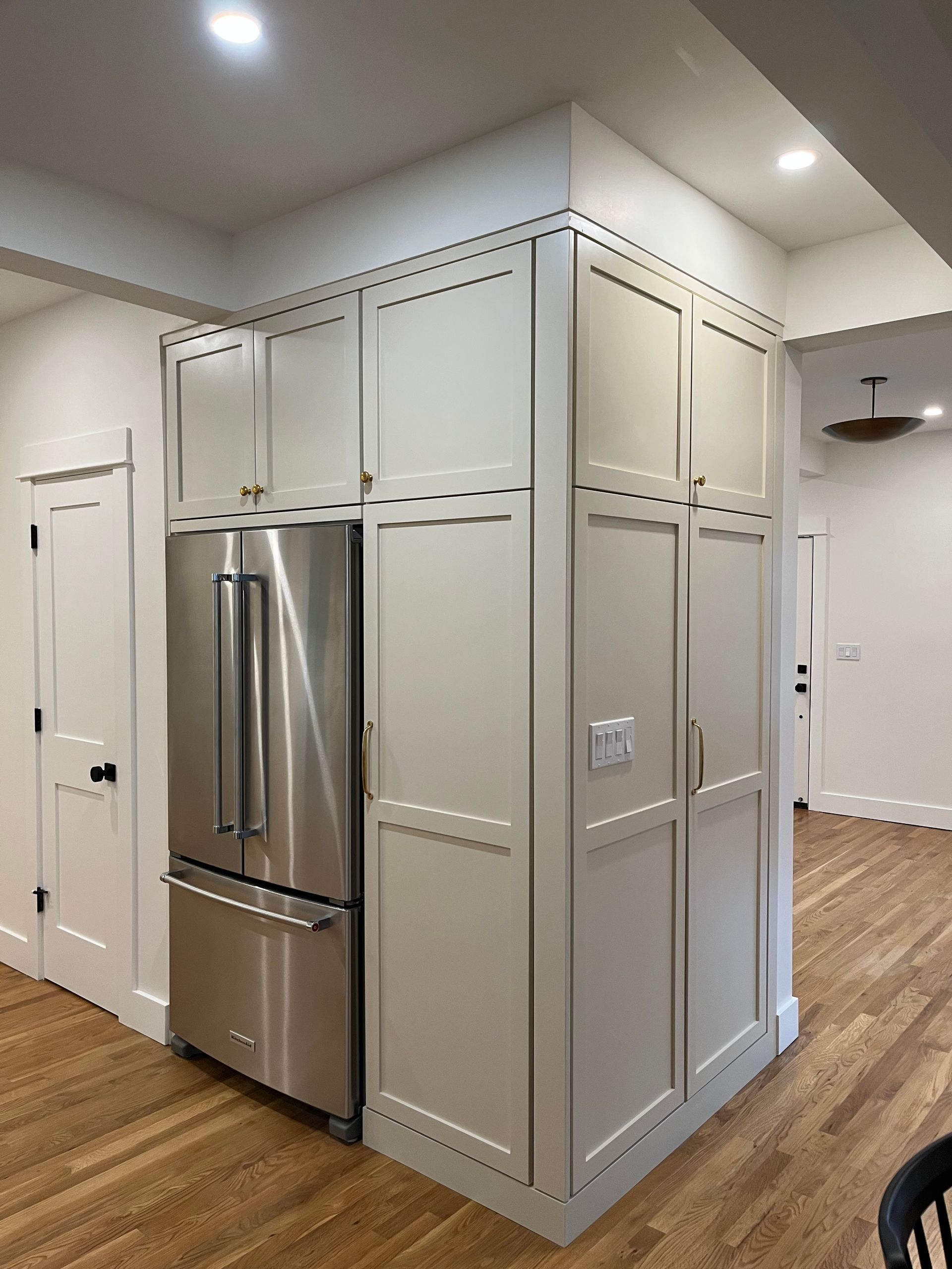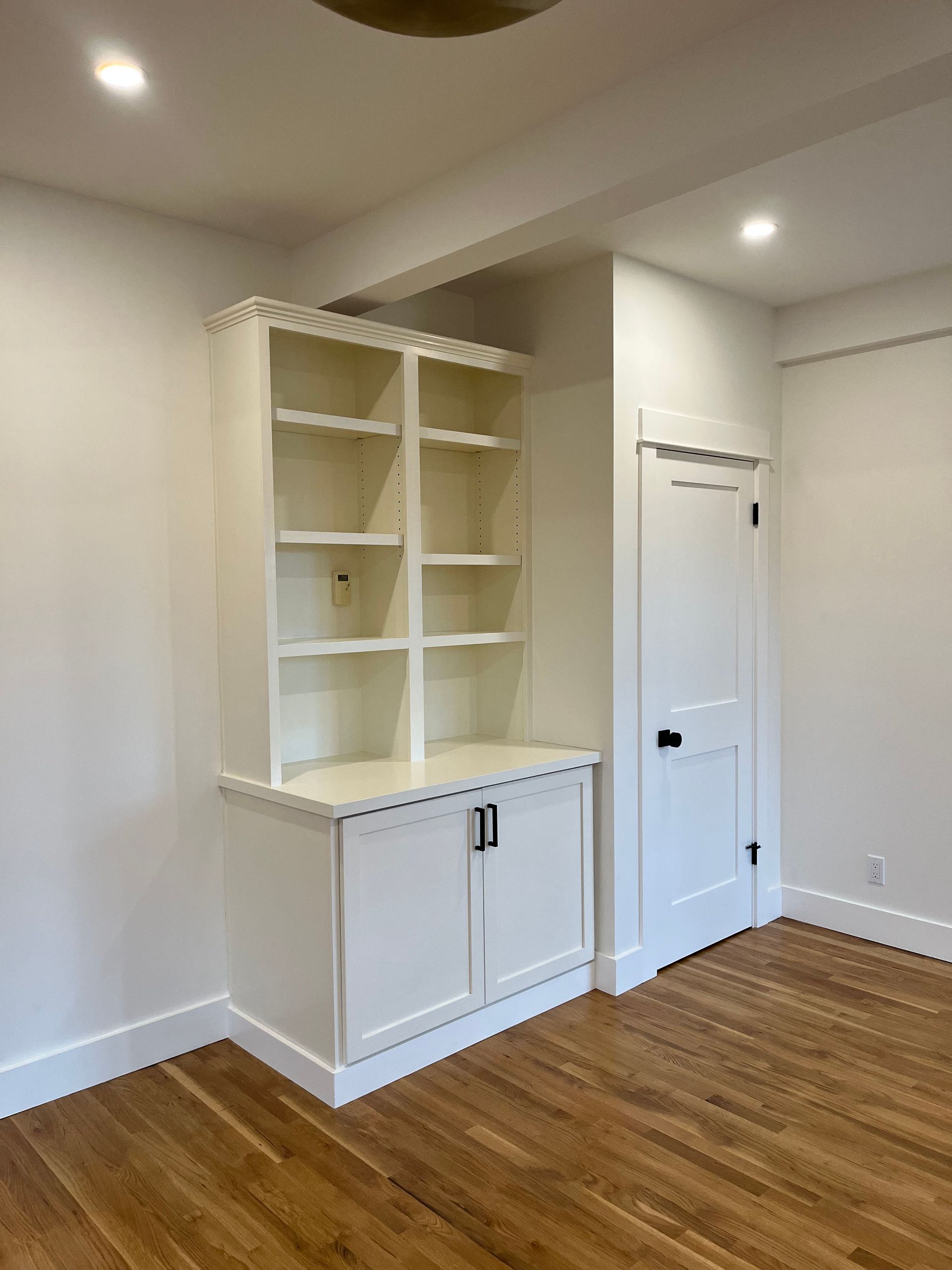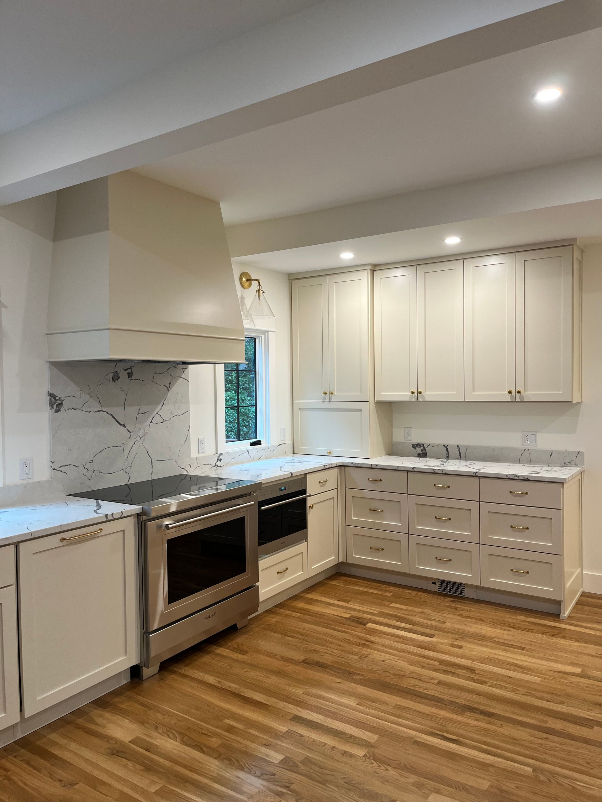 - Installed kitchen and dining room custom cabinets, and large stove hood unit to match the cabinets.