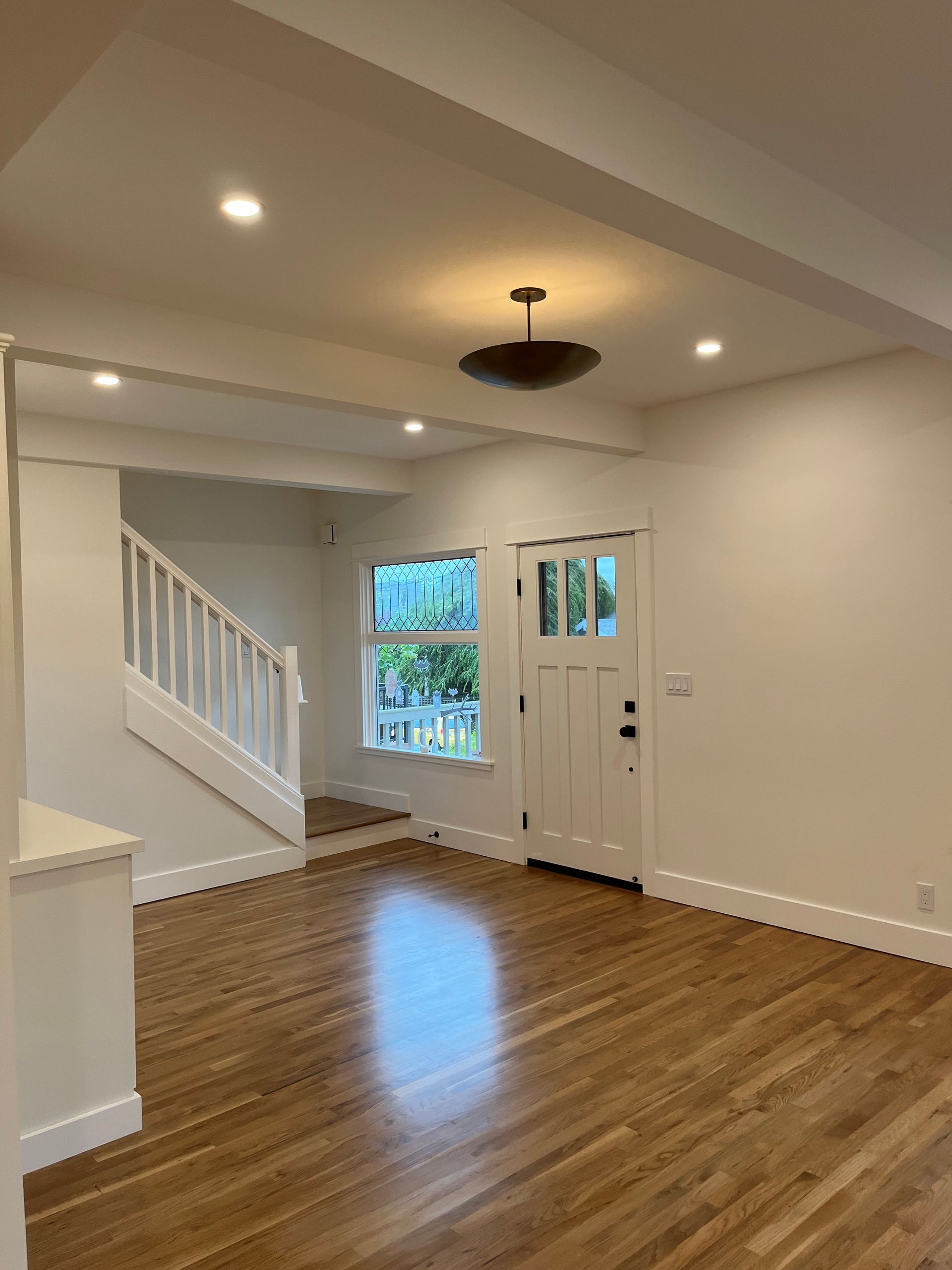 - Installed all new hardwood floors, sanded with three coats Swedish finish.