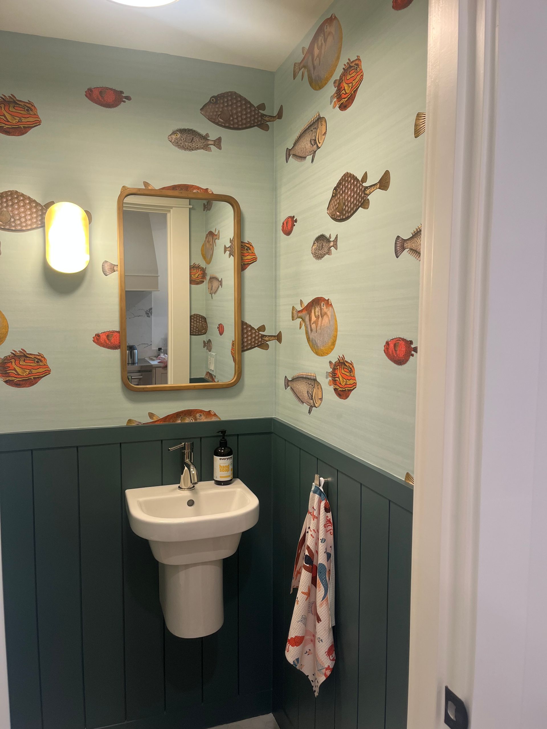 - Some structural work was needed in the existing powder room area, including addition of a new beam and posts.