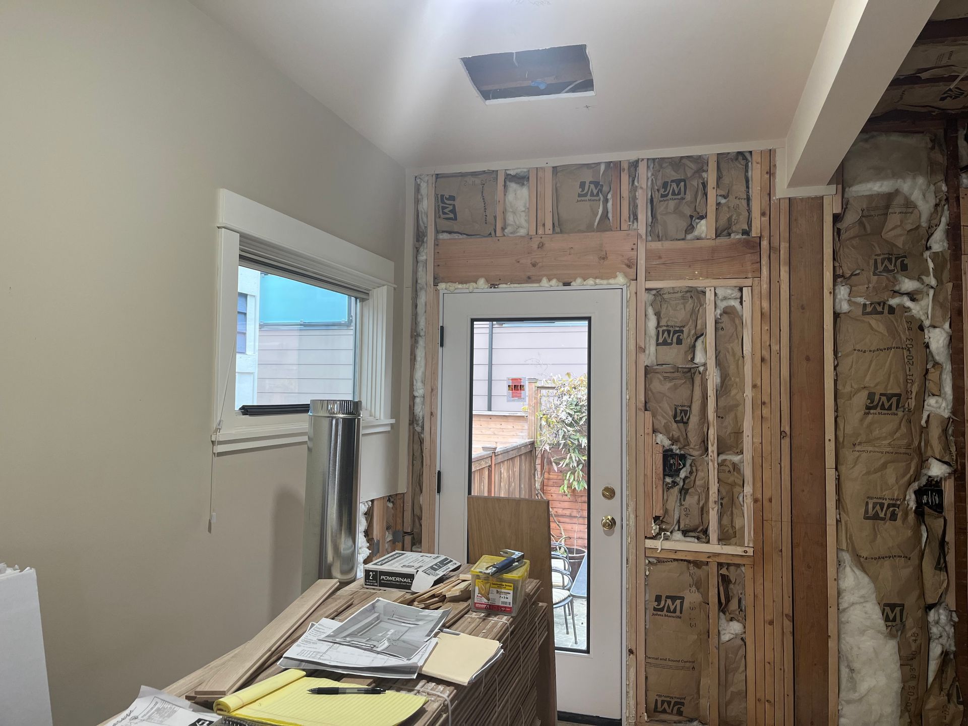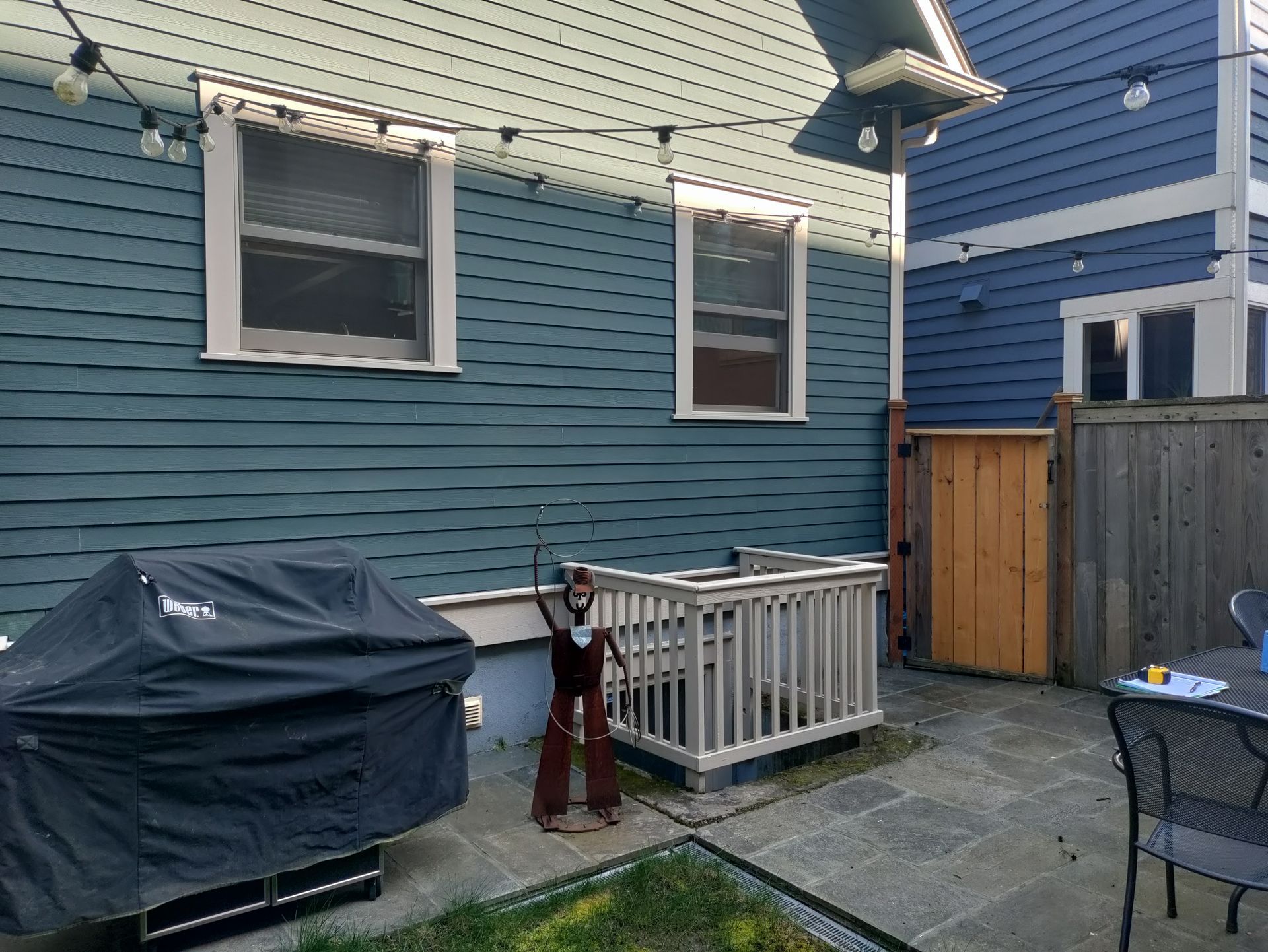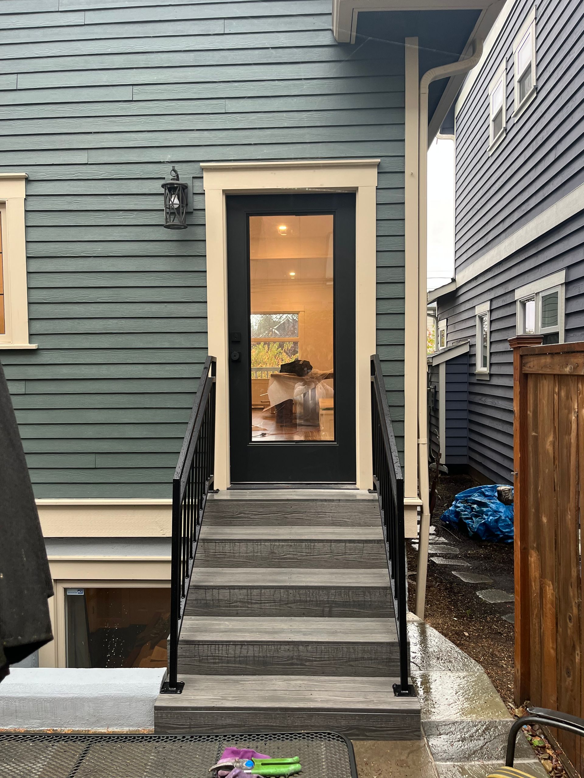 - Siding repair, exterior wood trim works and paint on the exterior, where the existing back door and windows were removed.