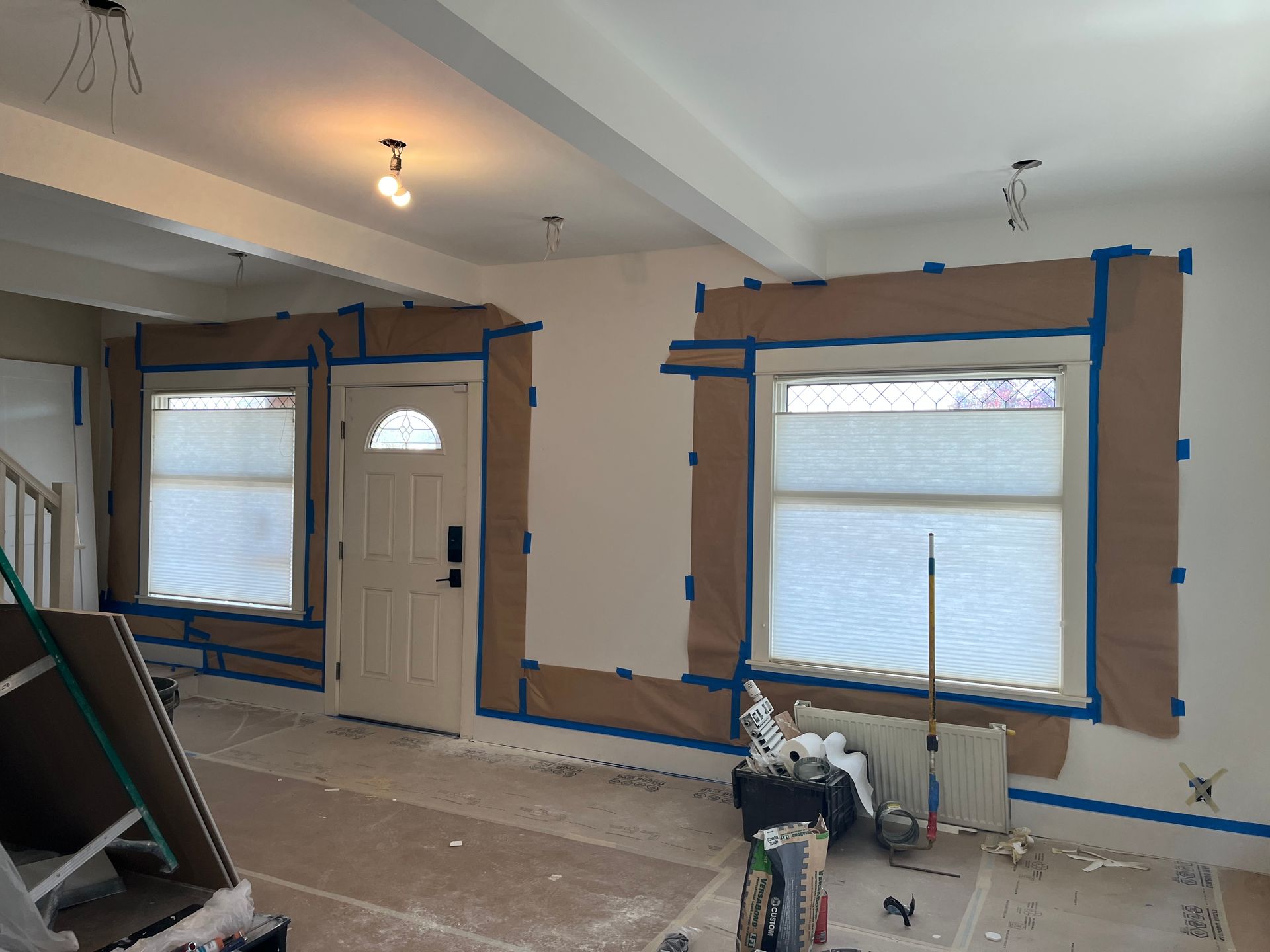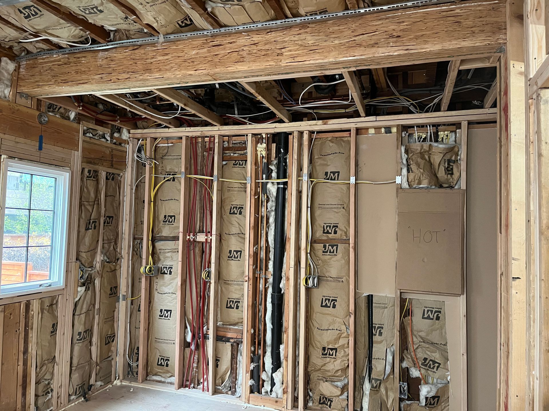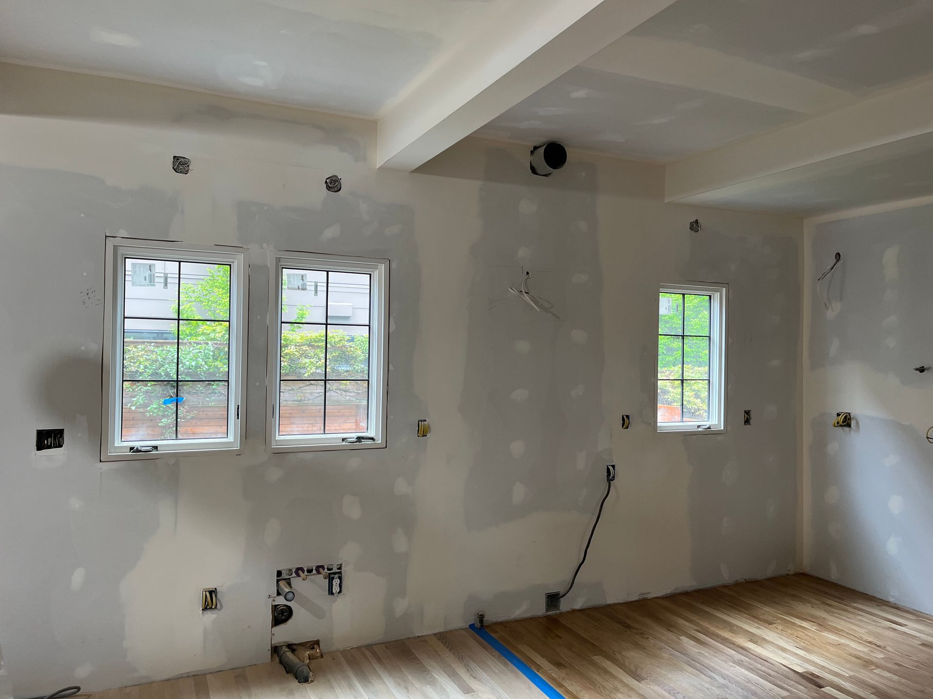- New insulation on the exposed exterior walks, and new drywall work. (insulation on exterior walks?)